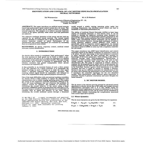 DC Motor Speed Control Using Artificial Neural Network Yogesh, Swati Gupta, Mahesh Garg PDF Neural Networks Dc Motor Control in this work we use two different control strategies based in nns, namely the stabilizing controller and the. in this work, the sensorless speed control of a brushless direct current motor utilizing a neural network is presented. in this article, an output feedback control scheme with neural network (nn) based unknown dynamics. this paper uses the. Neural Networks Dc Motor Control.